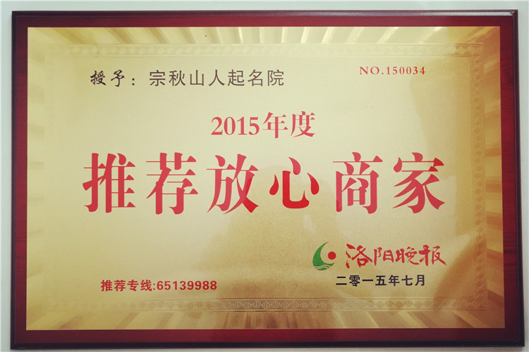 洛阳晚报多次正面报道宗秋山人起名院,宗秋山人起名院客户多,客户素质高,优秀客户多等等的好消息,故特发此证,予以赞赏。